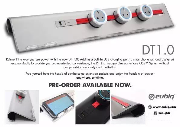 专利的扭转开/关功能 加强安全保障,特殊开发的“EU钥匙”可以锁定各个适配器,防止被盗。 与几乎所有国家的插头兼容 适配器和附件可以沿Eubiq轨道任意位置自由插入和移除 与所有Eubiq音轨兼容 支持所有类型的电子产品和电器